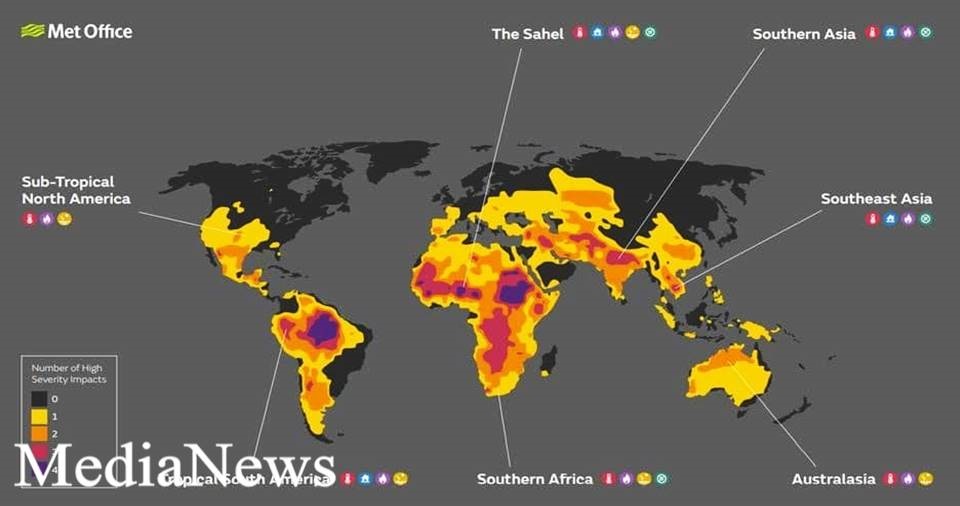 Ըստ COP26 -ում հրապարակված Մեծ Բրիտանիայի օդերևութաբանական կենտրոնի կողմից կատարված նոր ուսումնասիրությունների՝ ամբողջ աշխարհի բոլոր տարածաշրջաններում ծայրահեղ ջերմային սթրեսից (ջերմության և խոնավության պոտենցիալ մահացու համակցությունից) տուժած մարդկանց թիվը կարող է աճել մոտ 15 անգամ, եթե աշխարհում ջերմաստիճանը գերազանցի նախաարդյունաբերական մակարդակին 2°C -ով։
