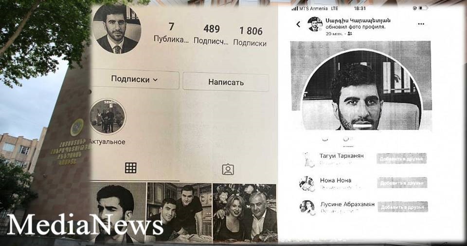 Քննությամբ տվյալներ են ձեռք բերվել այն մասին, որ վերջինս 2020թ. հունիսից մինչև 2021թ. հոկտեմբերն ընկած ժամանակահատվածում հանրությանը հայտնի անձանց՝ «Վարդան Սրմաքեշի», «Ալեն Սիմոնյանի», «Հայկ Սարգսյանի», «Սասի Արտակի», «Սամվել Կարապետյանի», «Սարգիս Կարապետյանի» անվամբ «Facebook.com» և «Instagram» սոցիալական կայքերում գրանցել է կեղծ էջեր: