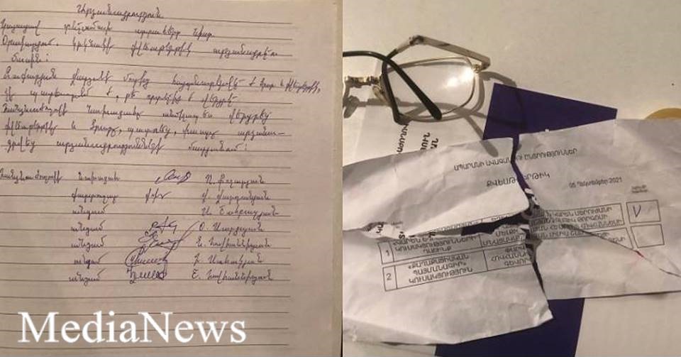 Մասնավորապես՝ քաղաքացի Զաքարյան Վարդանի մոտ հայտնաբերվել են ծրար և քվեաթերթիկ, որն արդեն քվեարկված է եղել՝ հօգուտ առաջին համար «Կարեն Եղիազարյան» դաշինքի: Հանձնաժողովի նախագահը պատռել է տվյալ քվեաթերթիկը, կազմվել է արձանագրություն:
