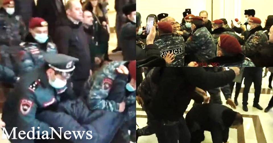 Ավելի ուշ «Կամքի» անդամ Վահագն Չախալյանը վրդովված կերպով սկսեց ոստիկանների հետ բանակցել և իր բողոքները նրանց ներկայացնել: Ոստիկաններից մի քանիսը Չախալյանին հորդորեցին հանգիստ եւ առանց բղավոցների խոսել, վերջինս, չանսալով նրանց հորդորներին, շարունակում էր հուզախառն և ագրեսիվ ելույթը: Րոպեներ հետո ոստիկաններն առաջացան դեպի Չախալյանը՝ նրան բերման ենթարկելու նպատակով, որից հետո հավաքվածների եւ ոստիկանների միջեւ քաշքշուկ սկսվեց: