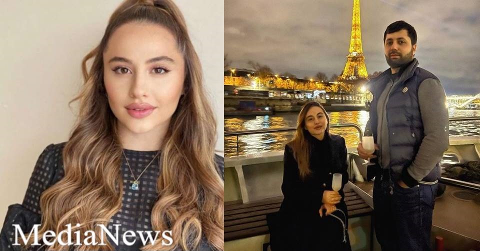 Փարիզում արված կադրում նորապսակ զույգը շամպայնի բաժակները ձեռքին կեցվածք է ընդունել Էյֆելյան աշտարակի ֆոնին: