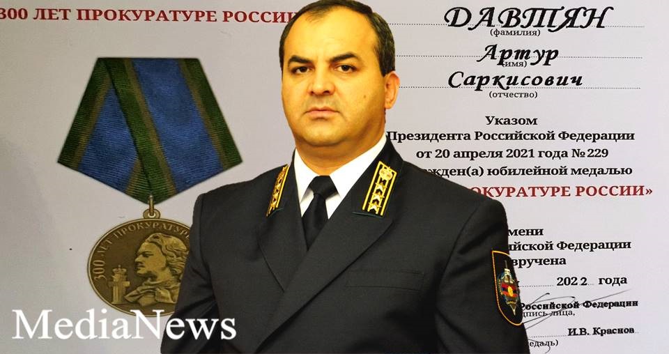 Ռուսաստանի Դաշնության նախագահ Վլադիմիր Պուտինի 2021թ. ապրիլի 20-ի հրամանով Հայաստանի Հանրապետության գլխավոր դատախազ Արթուր Դավթյանը երկու երկրների դատախազությունների միջև արդյունավետ համագործակցության համար պարգևատրվել է «Ռուսաստանի դատախազության 300 տարին» հոբելյանական մեդալով: