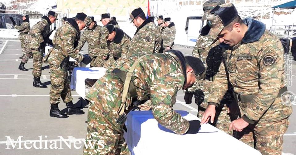 Նորակոչիկները երդվել են անձնվիրաբար ծառայել հայրենիքին, անվերապահորեն կատարել հրամանատարների հրամանները և պատվով պաշտպանել հայրենի երկրի սահմանները։
