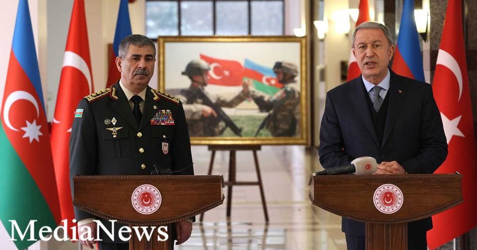 Թուրքիայի ու Ադրբեջանի պաշտպանության նախարարներ Հուլուսի Աքարի ու Զաքիր Հասանովի հանդիպումից հետո տեղի է ունեցել համատեղ կարճ ասուլիս: Դրա ընթացքում Աքարն անդրադարձել է հանդիպման ընթացքում քննարկված հարցերին: