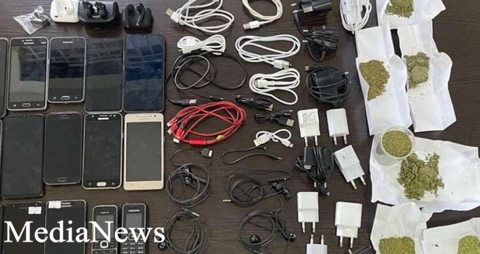 մարիխուանա տեսակի թմրամիջոցին նմանվող, ընդհանուր 57 գրամ քաշով բուսական զանգված, 15 հատ բջջային հեռախոս, բջջային հեռախոսի 14 հատ լիցքավորիչ, ինչպես նաև մեկ տասնյակից ավելի ականջակալներ և USB լարեր: