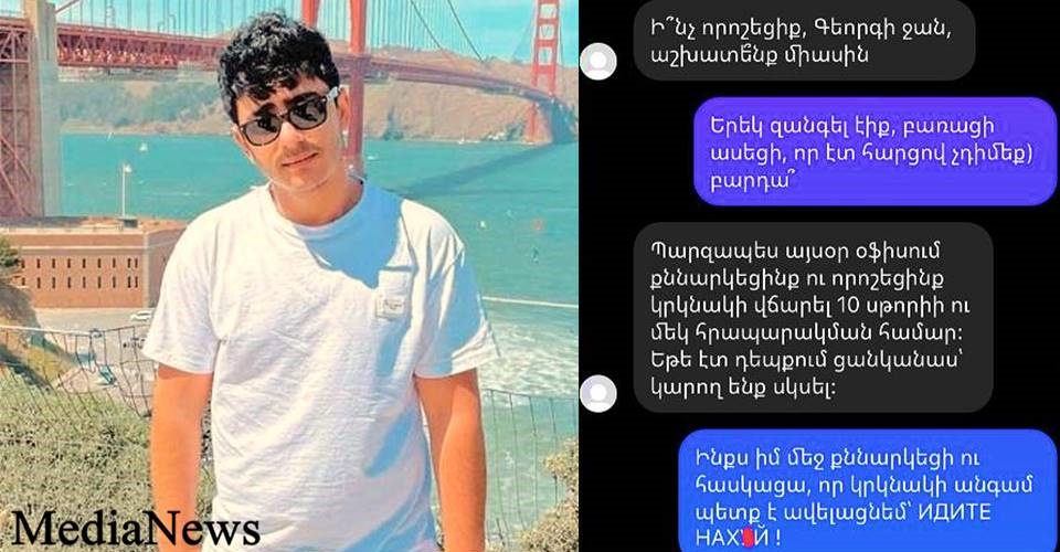 «Չեմ ուզում կոնկրետ նշել, թե այս դեպքում որ ուժից եմ ստացել, բայց բոլոր ուժերը մի գնով վաճառվում են: Հնարավոր է, որ շատ վիդեոբլոգերներ կամ դերասաններ ուրախ լինեն նման առաջարկներից, բայց ես խորապես ցավում եմ, որ մեր իրականությունում նման առաջարկներ են լինում»,- նշեց նա: