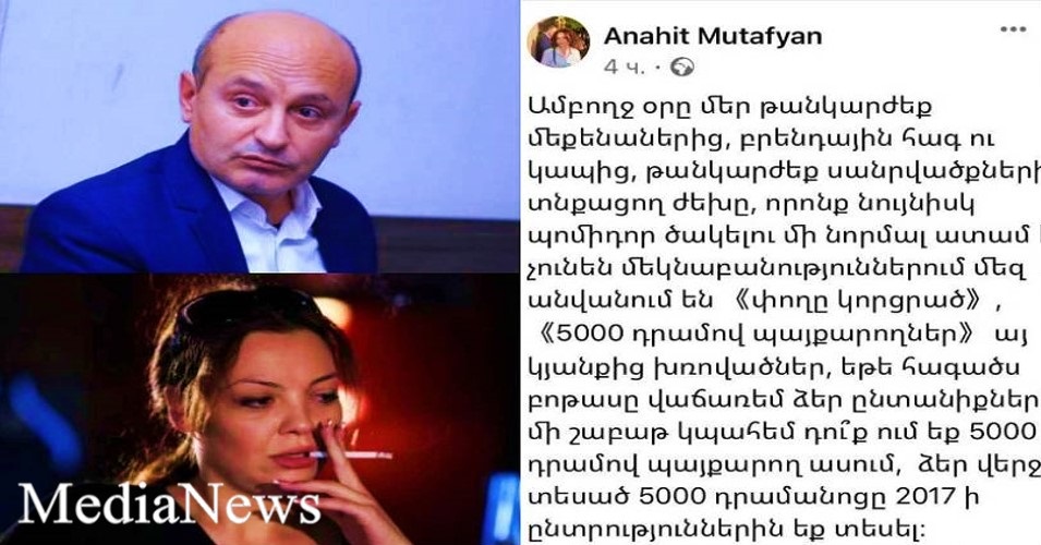 Քաղաքագետ Ստյոպա Սաֆարյանը «Ֆեյսբուք» սոցիալական ցանցի իր էջում անդրադարձել է ընդդիմադիր ակտիվիստ Անահիտ Մութաֆյանի գրառմանը և գրել.