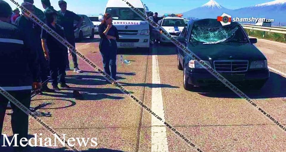 Shamshyan.com-ի փոխանցմամբ՝ ժամը 09:20-ի սահմաններում Արարատի մարզի բնակիչ, 31-ամյա Ցոլակ Ե.-ն իր վարած Mercedes մակնիշի ավտոմեքենայով Երևան-Երասխ ավտոճանապարհի 18-րդ կմ հատվածում վրաերթի է ենթարկել 2 հեծանվորդի: