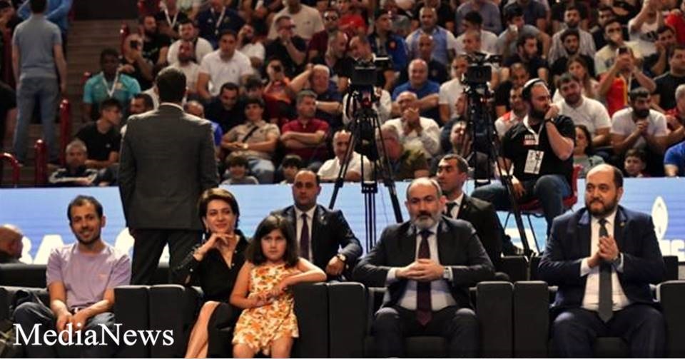 Նա տրիբունայից աջակցեց Հայաստանի հավաքականի անդամներ Արթուր Բազեյանին և Հովհաննես Բաչկովին: Մենամարտերին ներկա էին նաև վարչապետի տիկին Աննա Հակոբյանը, որդին՝ Աշոտ Փաշինյանը և դուստրը՝ Արփի Փաշինյանը: