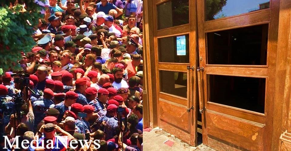 Կառավարության 3-րդ մասնաշենք ներխուժման փորձի ժամանակ կոտրվել է շենքի դուռը և աստիճանների բազրիքը: