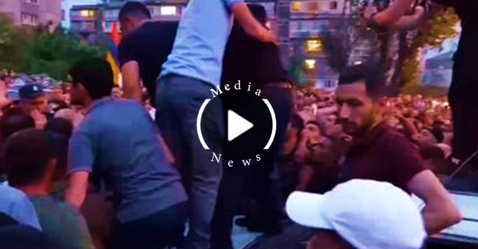 Երբ Սաղաթելյանը նշեց, որ փակ ճանապարհներ իրենց առաջ չեն կարող լինել, որոշ ցուցարարներ սկսեցին շշեր, քարեր ու այլ իրեր նետել ոստիկանների ուղղությամբ, առաջին շարքերում կանգնածները սկսեցին հարվածել ոստիկաններին։