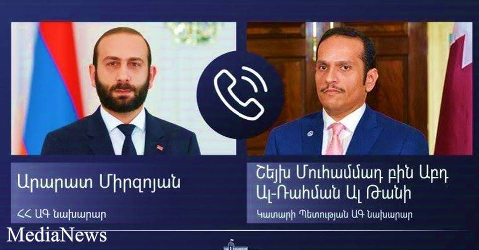 Հունիսի 22-ին Հայաստանի Հանրապետության ԱԳ նախարար Արարատ Միրզոյանը հեռախոսազրույց է ունեցել Կատարի Պետության ԱԳ նախարար Շեյխ Մուհամմադ բին Աբդ Ալ-Ռահման Ալ Թանիի հետ։