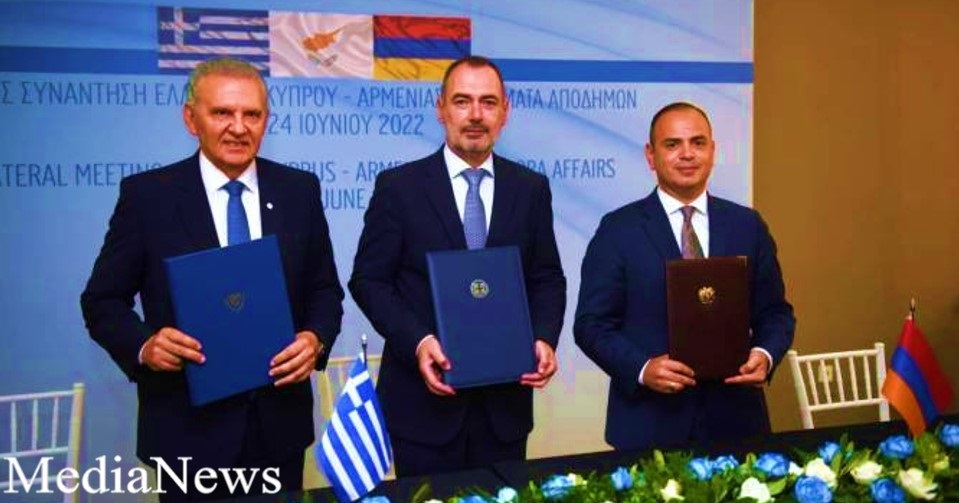 Աթենքում hունիսի 24-ին Հայաստանի, Հունաստանի և Կիպրոսի միջև ստորագրվել է սփյուռքի հարցերի շուրջ եռակողմ համագործակցության հուշագիր: Հուշագիրը ստորագրել են ՀՀ սփյուռքի գործերի գլխավոր հանձնակատար Զարեհ Սինանյանը, Հունաստանի արտաքին գործերի նախարարի տեղակալ Անդրեաս Կացանիոտիսը և Կիպրոսի Հանրապետության նախագահի արտերկրյա և հումանիտար հարցերով հանձնակատար Ֆոտիու Ֆոտիսը: