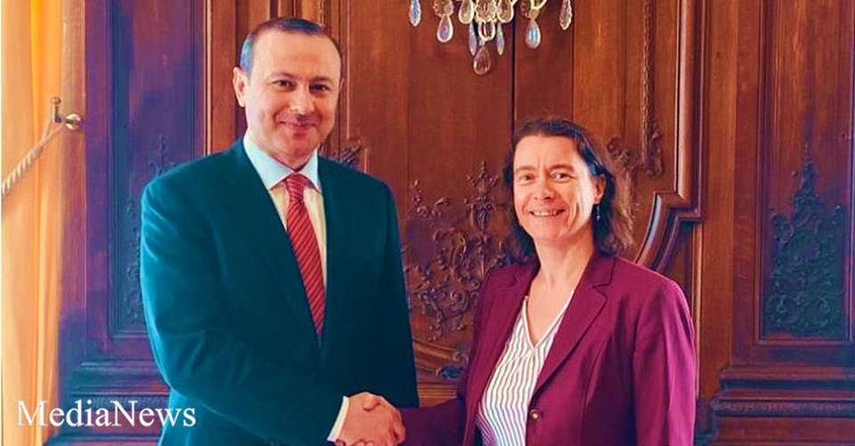 Անվտնագության խորհրդի քարտուղար Արմեն Գրիգորյանը Փարիզում հանդիպել է Ֆրանսիայի Հանրապետության նախագահ Էմանուել Մակրոնի դիվանագիտական խորհրդական Իզաբել Դյումոնի հետ: