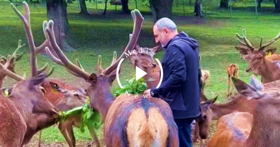Աննա Հակոբյանը այցից ֆեսբուքյան իր էջում տեսանյութ է հրապարակել, որտեղ վարչապետը կերակրում է եղջերուներին։