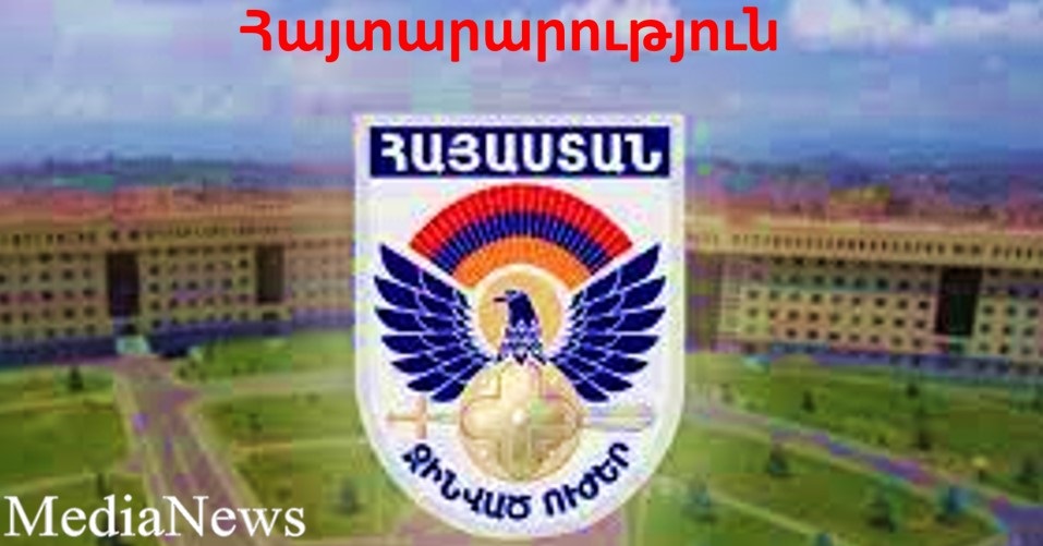 ՀՀ պաշտպանության նախարարության մամուլի խոսնակ Արամ Թորոսյանը հաղորդագրություն է տարածել, որում ասվում է․