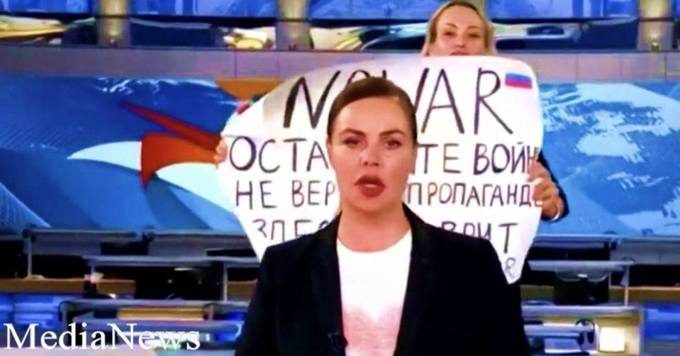 Նախօրեին Օվսյաննիկովան Կրեմլում քաղաքական պաստառով բողոքի ակցիա էր իրականացրել, որում Վլադիմիր Պուտինին անվանել էր «մարդասպան», իսկ ռուս զինվորականներին՝ «ֆաշիստներ»։