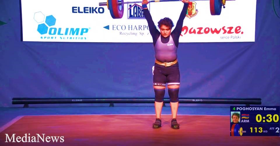 Լեհաստանում ավարտին մոտեցող ծանրամարտի Եվրոպայի պատանեկան առաջնությունում Հայաստանի հավաքականը հերթական ոսկին նվաճեց: 81կգ քաշային՝ Մ17 աղջիկների մրցապայքարում, գերազանց հանդես եկավ գյումրեցի մարզուհի Էմմա Պողոսյանը, ով 206կգ (91+115) արդյունքով հռչակվեց Եվրոպայի չեմպիոն: