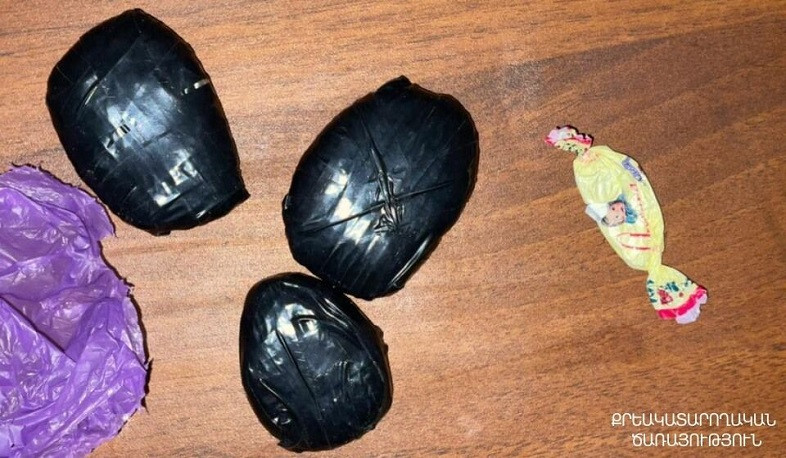 Խուզարկության արդյունքում վերջինիս մոտից հայտնաբերվել են փաթեթներ, որոնցում առկա են եղել մարիխուանա տեսակի թմրամիջոցին նմանվող, ընդհանուր 67,1 գրամ քաշով առանձնացված զանգվածներ: