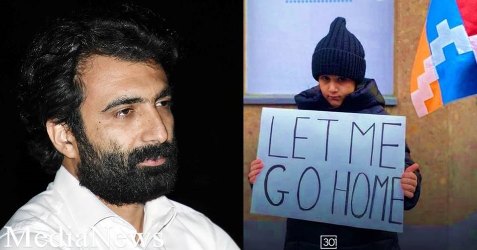 Ռեժիսորը, ով հայտնի է Արցախի եւ արցախյան հիմնահարցի մասին իր ֆիլմերով, հրապարակել է Երեւանում ՄԱԿ-ի գրասենյակի դիմաց կանգնած փոքրիկ աղջկա մի լուսանկար, ում ձեռքին «Թույլ տվեք տուն գնամ» մակագրությամբ պաստառ է:
