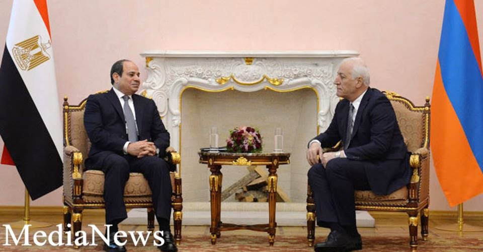 Եգիպտոսի նախագահ Աբդել Ֆաթթահ Ալ-Սիսին շնորհակալություն է հայտնել ջերմ ընդունելության համար և կարևորել հայ-եգիպտական բազմաշերտ համագործակցությունն առաջ մղելու անհրաժեշտությունը՝ ինչպես առևտրատնտեսական, այնպես էլ դիվանագիտական հարաբերությունների զարգացման ուղղությամբ: Իր խոսքում Եգիպտոսի նախագահը նշել է, որ Եգիպտոսը նույնպես առնչվել է տարածաշրջանային հակամարտությունների և իր հերթին պատրաստակամ է հնարավոր ջանքերը ներդնել հայ-ադրբեջանական հակամարտության խաղաղ կարգավորման համար: «Եգիպտոսը մինչ օրս շարունակում է տարբեր տարածաշրջանային խնդիրների և կոնֆլիկտների ականատես լինել և պետք է արձանագրել մեկ շատ կարևոր հանգամանք, որ նախորդ դարի 70-ական թվականներից սկսած Եգիպտոսը գնաց խաղաղության ճանապարհով և այդ ճանապարհին բախվեց մի շարք խոչընդոտների…