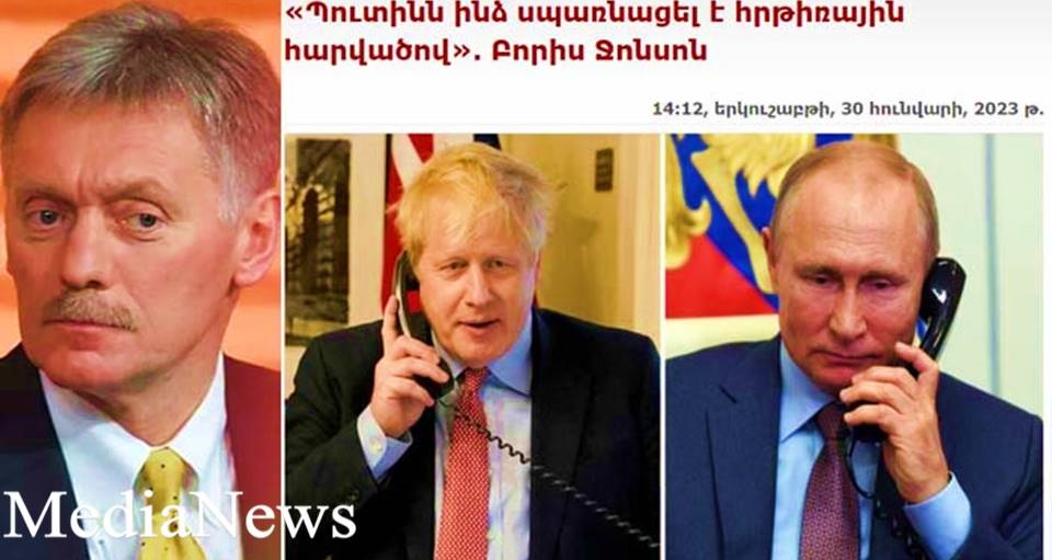 ՌԴ նախագահի մամուլի քարտուղար Դմիտրի Պեսկովը հերքել է Մեծ Բրիտանիայի նախկին վարչապետ Բորիս Ջոնսոնի՝ հրթիռային հարվածի սպառնալիքի մասին հայտարարությունը: