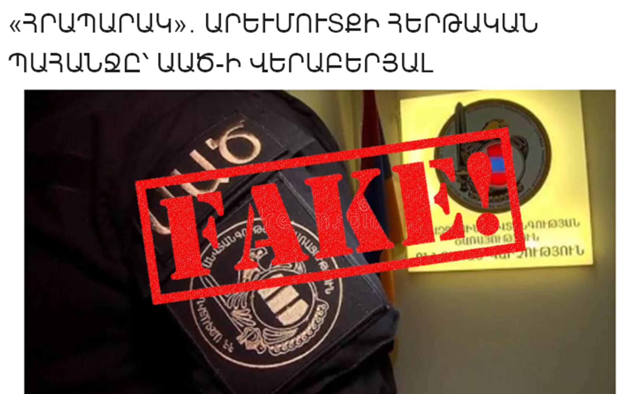 Հրապարակ օրաթերթի հրապարակած այն լուրը, թե իբրև Ազգային անվտանգության ծառայությունում քննարկումներ են սկսվել կառույցի հնարավոր լուծարման մասին, կեղծ են՝ ապատեղեկատվություն: