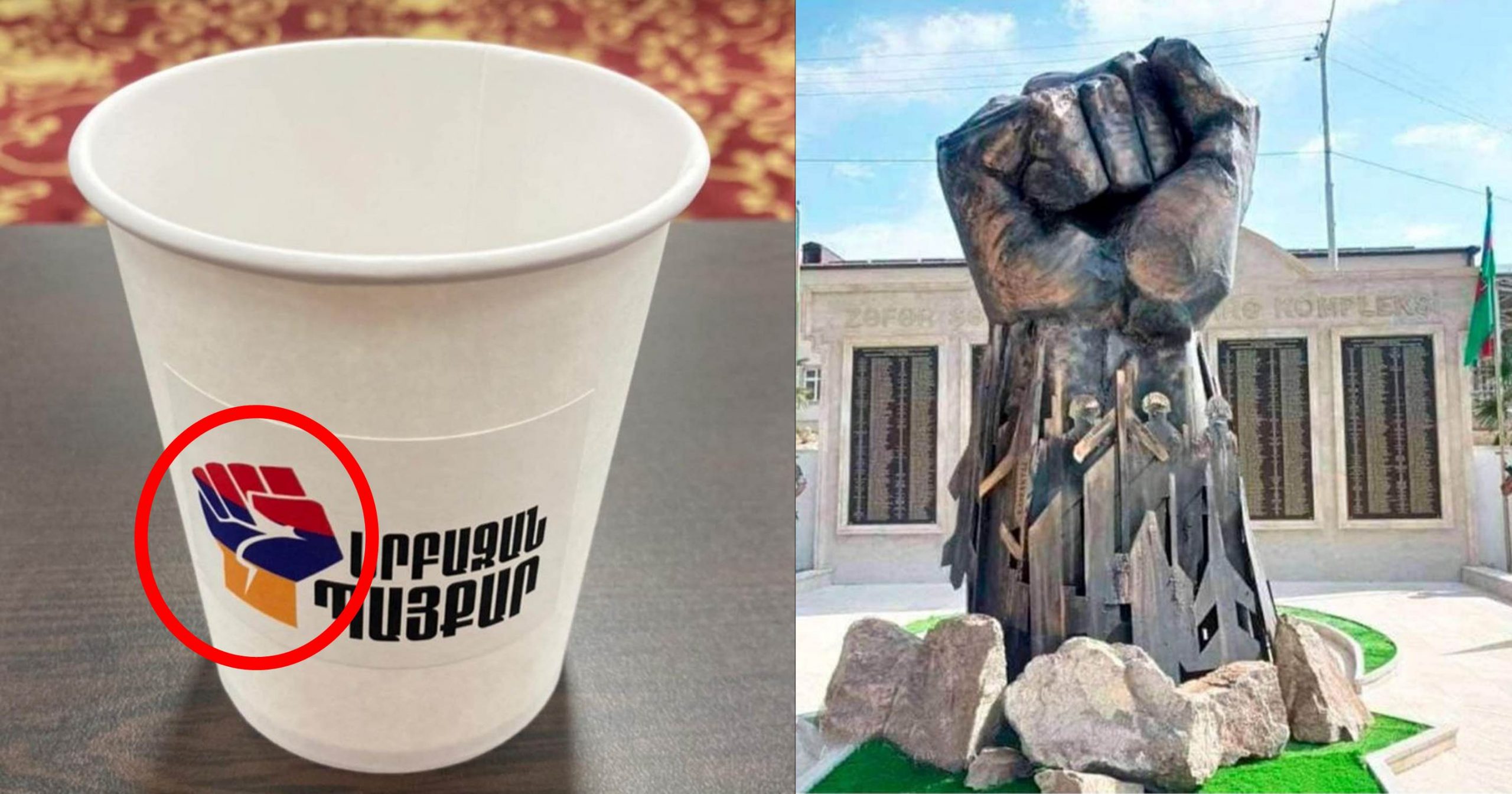 Ուշադրություն դարձրեք շարժման տարբերանշանին՝ նմանօրինակ հուշարձան տեղադրված է Ադրբեջանում, կոչվում է «երկաթե բռունցք»
