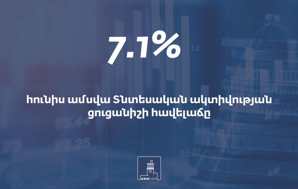 Ընթացիկ տարվա հունիսին նախորդ տարվա նույն ամսվա համեմատ Հայաստանում Տնտեսական ակտիվության ցուցանիշի (ՏԱՑ) հավելաճը կազմել է 7.1%, իսկ նախորդ ամսվա համեմատ՝ 11.2%: Այս մասին հայտնում են ՀՀ կառավարությունից։