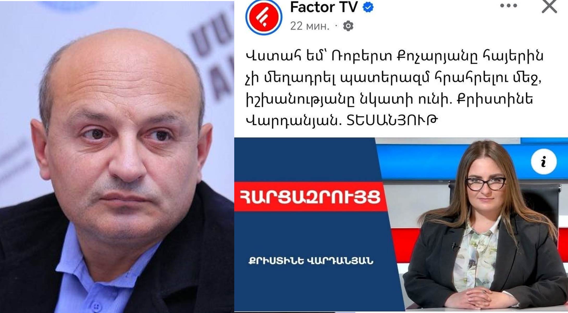 Քաղաքագետ Ստյոպա Սաֆարյանն իր ֆեյսբուքյան էջում գրառում է արել՝ անդրադառնալով Քոչարյանի՝ հայերի կողմից պատերազմ հրահրելու կեղծ պնդումներին։