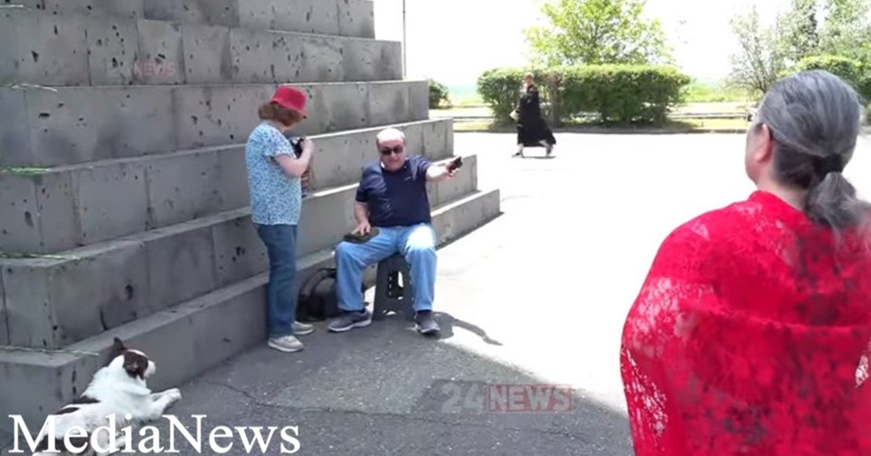Եկել մեռելներից ու ոսկորներից են խոսում, փոխանակ հաղթանակից խոսեն։ Հերիք է, էս երկիրը կյանքի ու ապրելու երկիր է»,- իրավիճակը բորբոքված ներկայացրեց տղամարդը, վիրավորեց լրագրողներին, թե ինչո՞ւ են նկարահանում։
