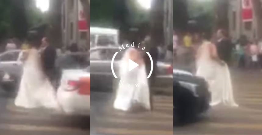 Տեսախցիկը ֆիքսել է, թե ինչպես են հարս ու փեսան փորձում Երևանի կենտրոնում հատել փողոցը: