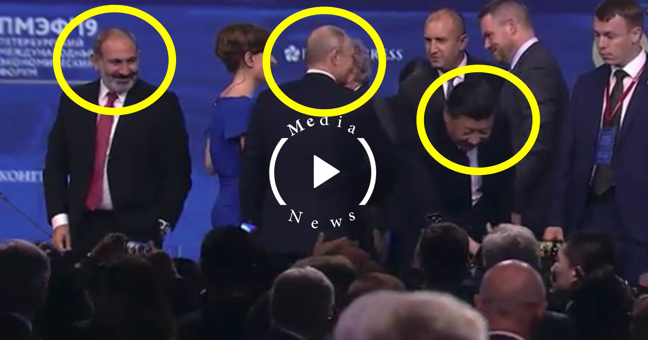 Սանկտ Պետերբուրգի տնտեսական ֆորումի ժամանակ երկրների ղեկավարների, այդ թվում` Նիկոլ Փաշինյանի մասնակցությամբ պանել-քննարկումից հետո առաջնորդները ողջունել են հյուրերին՝ բեմից սեղմելով նրանց ձեռքերը։