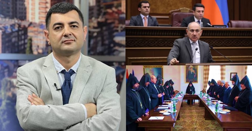 Քաղաքագետի խոսքով՝ ստեղծված իրավիճակի իրական պատճառն այն է, որ Եկեղեցու ղեկավարությունն աշխատում է պետականության դեմ. «Այս պահին Նիկոլ Փաշինյանն իշխանություն է, ՔՊ-ն ընտրված, հետևապես լեգիտիմ իշխանություն է, եթե Եկեղեցու ղեկավարությունն աշխատում է այդ իշխանության դեմ, դա նշանակում է, որ աշխատում է պետության դեմ: Մենք նման դրսևորումներ շատ-շատ ենք տեսել․ Բագրատի, Աջապահյանի գործունեությունը, վերջին կալանավորվածի գործողությունները: Իրենք աշխատում են պետության դեմ, հարց է առաջանում՝ ինչու, ես լուրջ կասկածներ ունեմ, որ աշխատում են այլ պետությունների՝ կոնկրետ Ռուսաստանի շահերից ելնելով, սա նշանակում է մեկ բան, եթե Եկեղեցու և իշխանության միջև կարող է լինել հաշտություն, դա կարող է լինել բացառապես մեկ դեպքում, եթե Եկեղեցու ղեկավարությունը հրաժարվի իր հակապետական գործողություններից: Ամբողջ Եկեղեցին և Եկեղեցու վերնախավը Հայաստանի դեպքում տարբեր բաներ են: Եկեղեցին՝ լինելով հայոց պետականության հենասյուններից մեկը, շատ մեծ դերակատարում ունի մեր հանրային կյանքում, այսօր Եկեղեցին ռեալ շանս ունի օգտագործել իր բոլոր հնարավորությունները՝ ի բարօրություն ՀՀ պետականության ամրապնդման և զարգացման, ոչ թե հակառակը, իրենք պետք է դրանով զբաղվեն: Եթե իրենք իրոք ուզեն աշխատել Հայաստանի բարօրության համար, այլ ոչ թե թշնամիների օրակարգը սպասարկեն՝ անգնահատելի աջակցություն կարող են ունենալ հասարակության հաշտեցման հարցում»:
