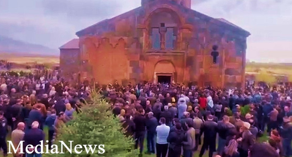 Փոքր եկեղեցին խիստ մարդաշատ է ներսում ու քանի որ ժամանած ոչ բոլոր քաղաքացիներին է հաջողվել ներս մտնել, հարյուրավոր մարդիկ պատարագը լսում են դրսում: