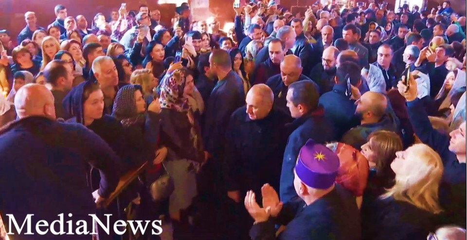 Վարչապետի ժամանելուց հետո հնչեցվել են եկեղեցու զանգերը, պատարագը մեկնարկել է:
