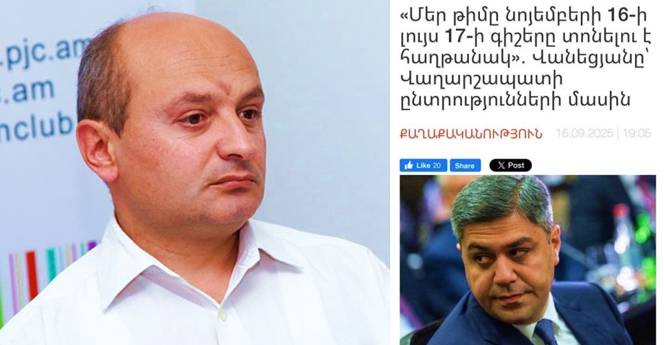 Քաղաքագետ Ստյոպա Սաֆարյանը «Ֆեյսբուք»-ի իր էջում գրառում է կատարել՝ անդրադառնալով Վաղարշապատի ՏԻՄ ընտրություններում «Քաղաքացիական պայմանագիր» կուսակցության տարած հաղթանակին և մինչ այդ Արթուր Վանեցյանի արած հայտարարությանը: