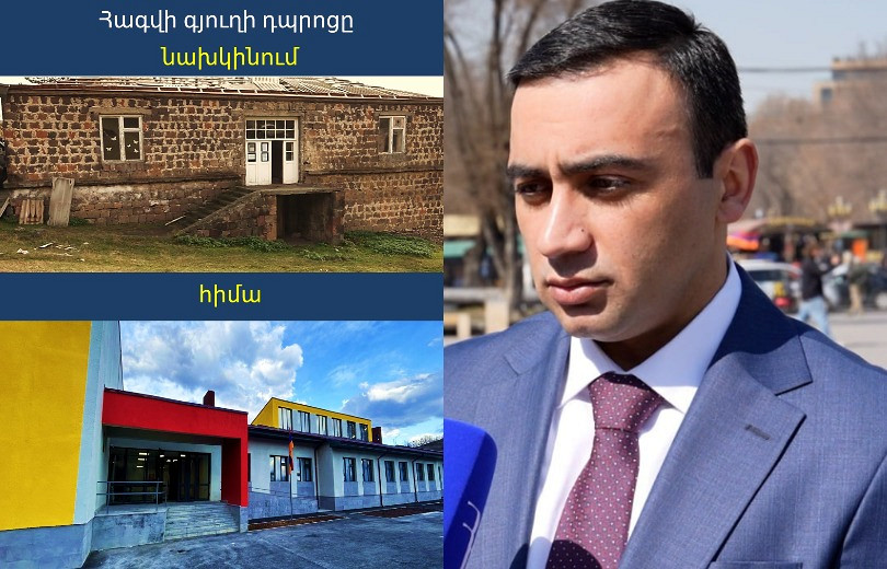 ՀՀ վարչապետի աշխատակազմի ղեկավարի տեղակալ Տարոն Չախոյանը սոցցանցի իր էջում հրապարակել է Հագվի գյուղի դպրոցի նախկին և ներկա լուսանկարներն ու գրել.