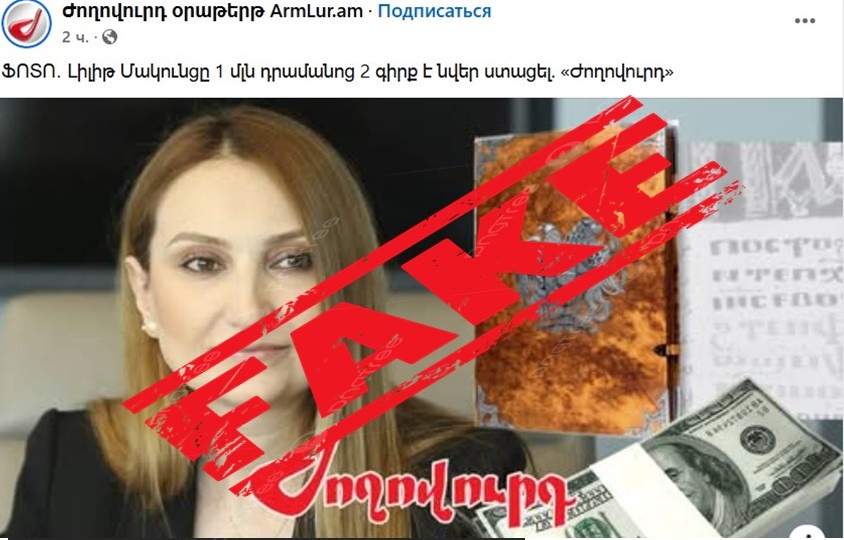 Տեղեկացնում ենք, որ «Ժողովուրդ» օրաթերթում տպագրված լուրն առ այն, որ ՀՀ վարչապետի գլխավոր խորհրդական Լիլիթ Մակունցն ստացել է նվեր (հանրագիտարան) 1 մլն 14 հազար դրամ արժողությամբ, չի համապատասխանում իրականությանը: