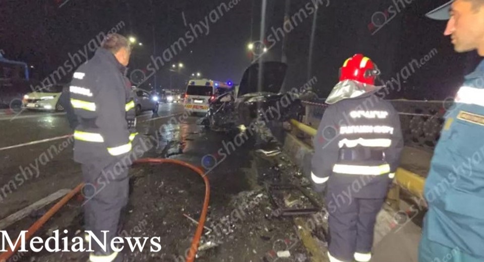 Բախման հետևանքով «BMW»-ն հայտնվել է կամրջի վրա տեղադրված երկաթե պաշտպանիչ խողովակի վրա։