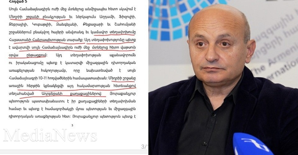 «Մեռնելիք է տեսնել, թե ինչպես է Հայաստանում իշխանությունը Արցախի խնդրով ու խաբեությամբ զավթած անձը պատերազմը հաղթած Հայաստանի անունից պաշտոնապես կողմ արտահայտվել, որ նախկին ԼՂԻՄ-ը «փոխանցվի» Հայաստանին, որը նշանակում է, որ այն ճանաչվել է Ադրբեջանին պատկանող, քանի որ «փոխանցողը» պետք է լիներ Ադրբեջանը, ապա ինչպես էին դրա դիմաց «կամավոր» տեղահանվելու Մեղրիի շրջանի ու Արցախի մեջ մտնող 6 շրջանները, որպեսզի դրանք «փոխանցվեին» ու «վերադարձվեին» Ադրբեջանին…