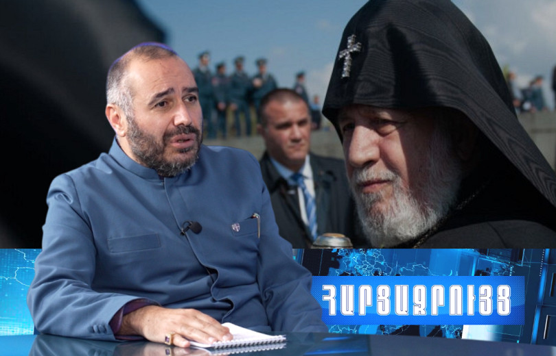 «Հայկական ժամանակ»-ի տաղավարում նա հարցադրում է անում. «Եթե հարց ենք բարձրացրել, ուրեմն դավաճա՞ն ենք: Ի՞նչ է նշանակում տիրադավ, Աստծո՞ւն ենք ուրացել, կաթողիկոսը մեր տերն է, և ուրացե՞լ ենք»: