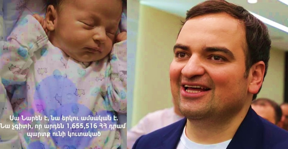 «Ձախ կողմում Նարեն է․ նա 2 ամսական է և, իհարկե, չի գիտակցում, որ իրեն «վերագրում» են 1․655․516 դրամ պետական պարտք։