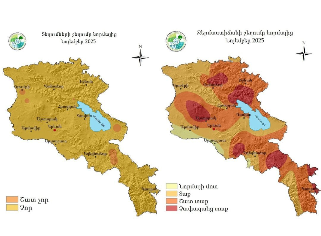 «Հիդրոօդերևութաբանության և մոնիթորինգի կենտրոն» ՊՈԱԿ-ը ներկայացրել է 2025 թվականի նոյեմբեր ամսվա կլիմայական պայմանները Հայաստանում: