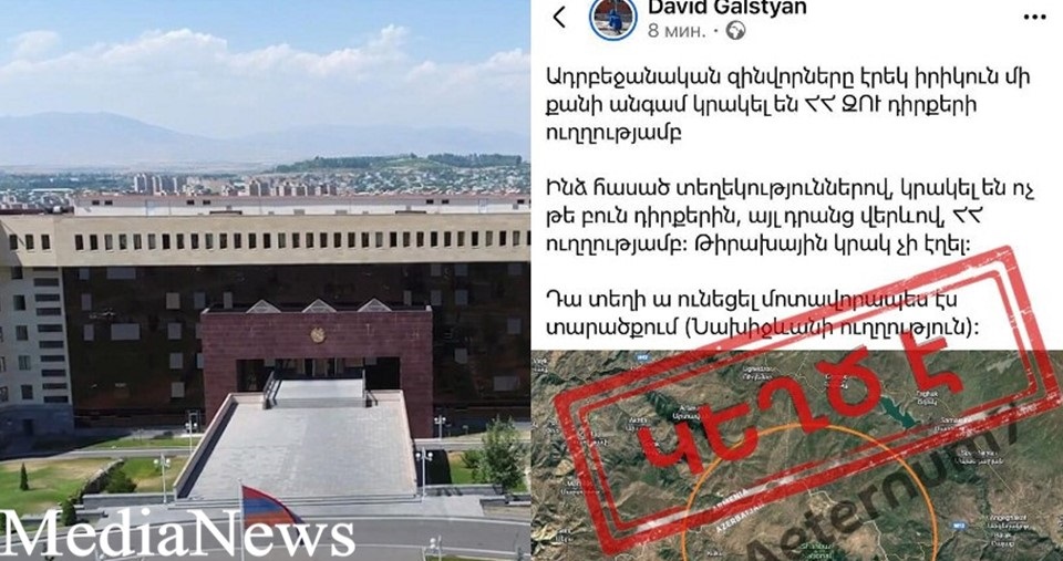 ՀՀ պաշտպանության նախարարությունից հերքել են ԶՈւ դիրքերի ուղղությամբ ադրբեջանական կրակոցների վերաբերյալ լուրերը։