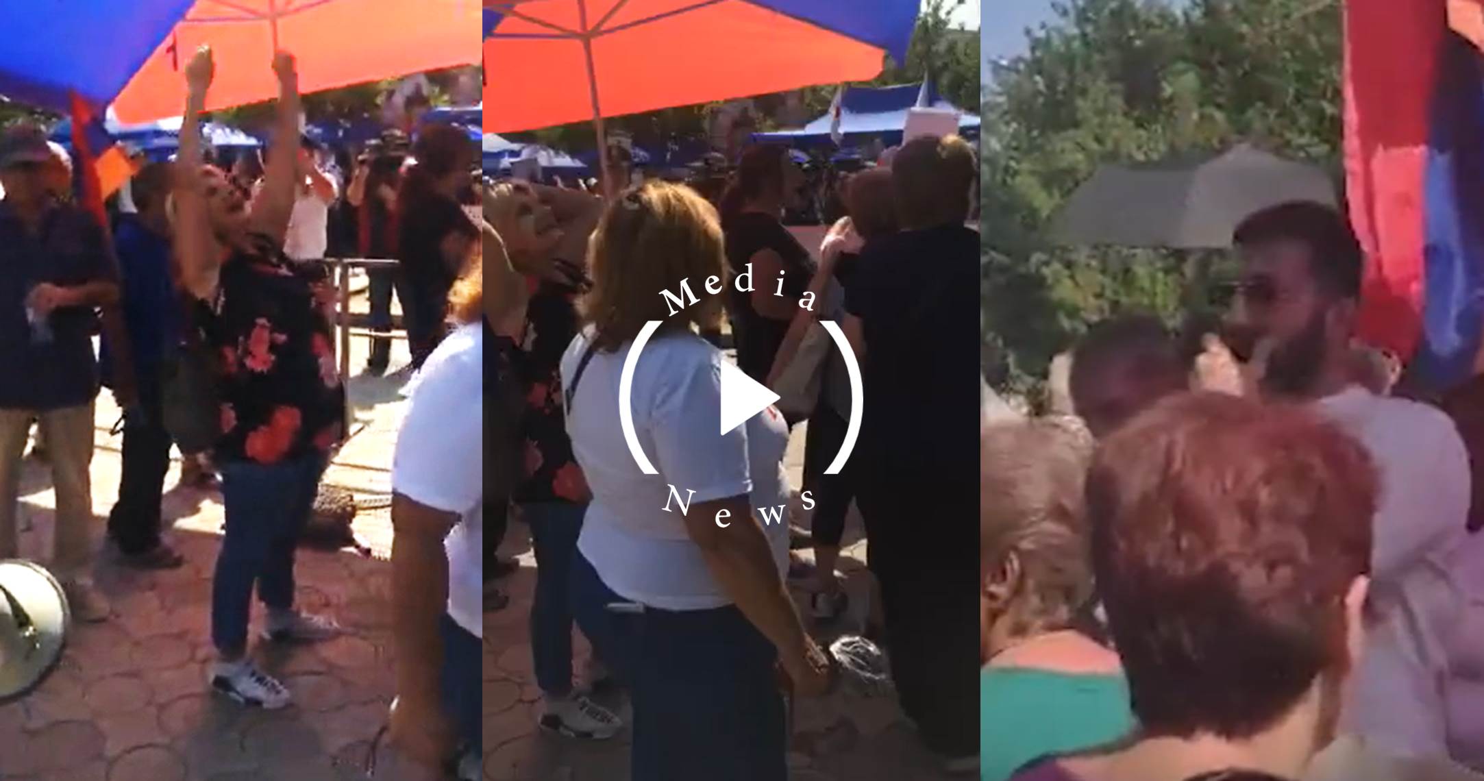 Հավաքվածներն արձագանքում են դատարանի դահլիճում տեղի ունեցողին ու շարունակում վանկարկումները: