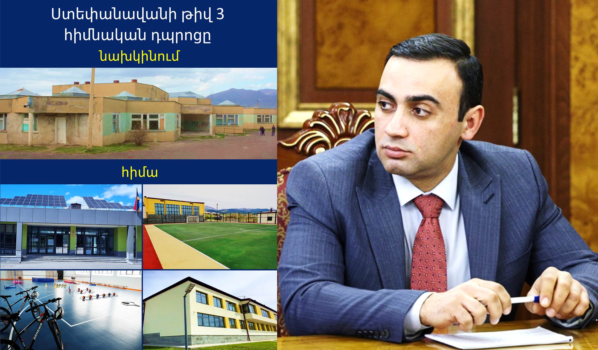 ՀՀ վարչապետի աշխատակազմի ղեկավարի տեղակալ Տարոն Չախոյանը «Ֆեյսբուք»-ի իր էջում լուսանկարներ է հրապարակել Ստեփանավանի թիվ 3 հիմնական դպրոցի նախկին ու ներկա տեսքից:
