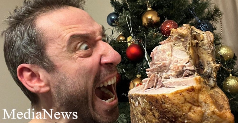 Լուսանկարում Մարությանը ծամածռել է դեմքը՝ ձեռքին պահելով խոզի բուդ: