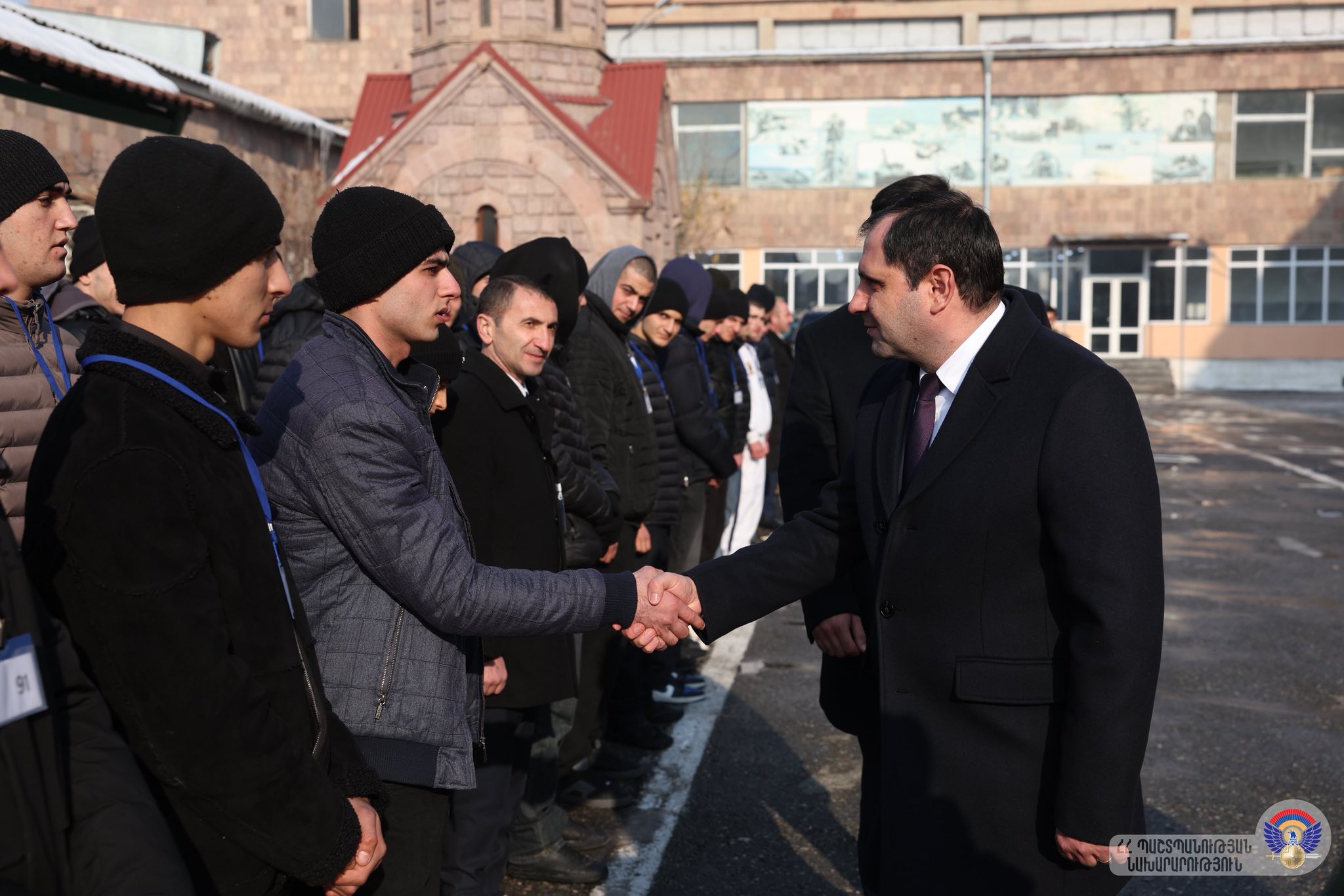 Ինչպես հայտնել են նախարարությունից, պաշտպանության նախարարը շրջել է հավաքակայանում, ծանոթացել զորակոչային հանձնաժողովների աշխատանքներին, զրուցել զորակոչիկների հետ՝ մաղթելով նրանց բարի և անվտանգ ծառայություն: