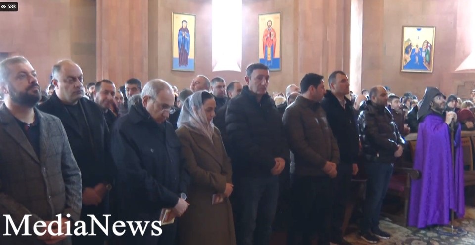 Նրա հետ միասին Մասիսի եկեղեցում են ՀՀ Էկոնոմիկայի նախարար Գևորգ Պապոյանը, Արարատի մարզպետը, պատգամավորներ, քաղաքային ու մարզային պաշտոնյաներ և այլք: